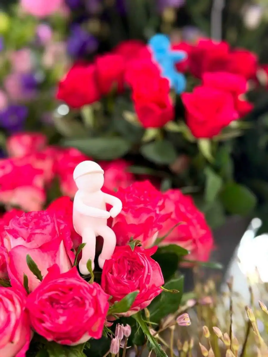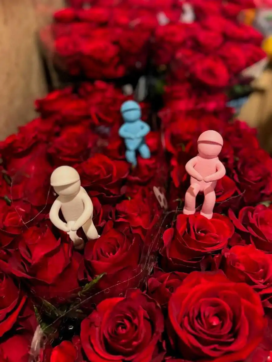 Rosige Zeiten …. Wir haben ständig über 20 Rosensorten vorrätig. Klein und günstig, kurz , mittellang oder lang, oder rote Premium Rosen wie Red Naomi, Ever Red oder Highness. Täglich frisch angeliefert ! Unserem „Blumenfreund“ dem Kantenhocker aus unserer eigenen 3D Druckerflotte jedenfalls gefällt es …. ![]()