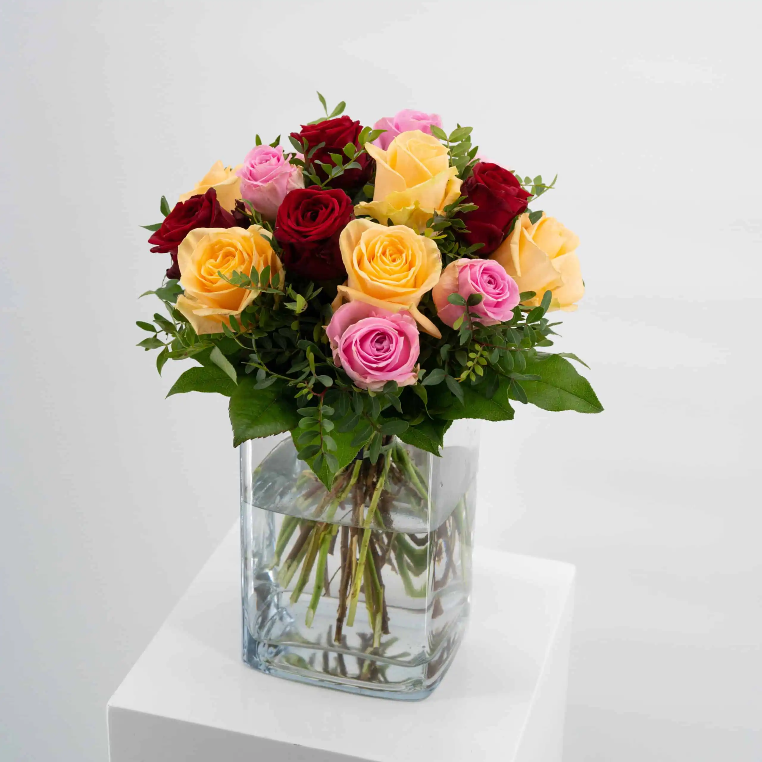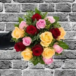 Schließen Sie die Augen und stellen Sie sich einen blühenden Rosengarten vor… Genau dieses Gefühl fängt unser bunter Rosenstrauß ein.